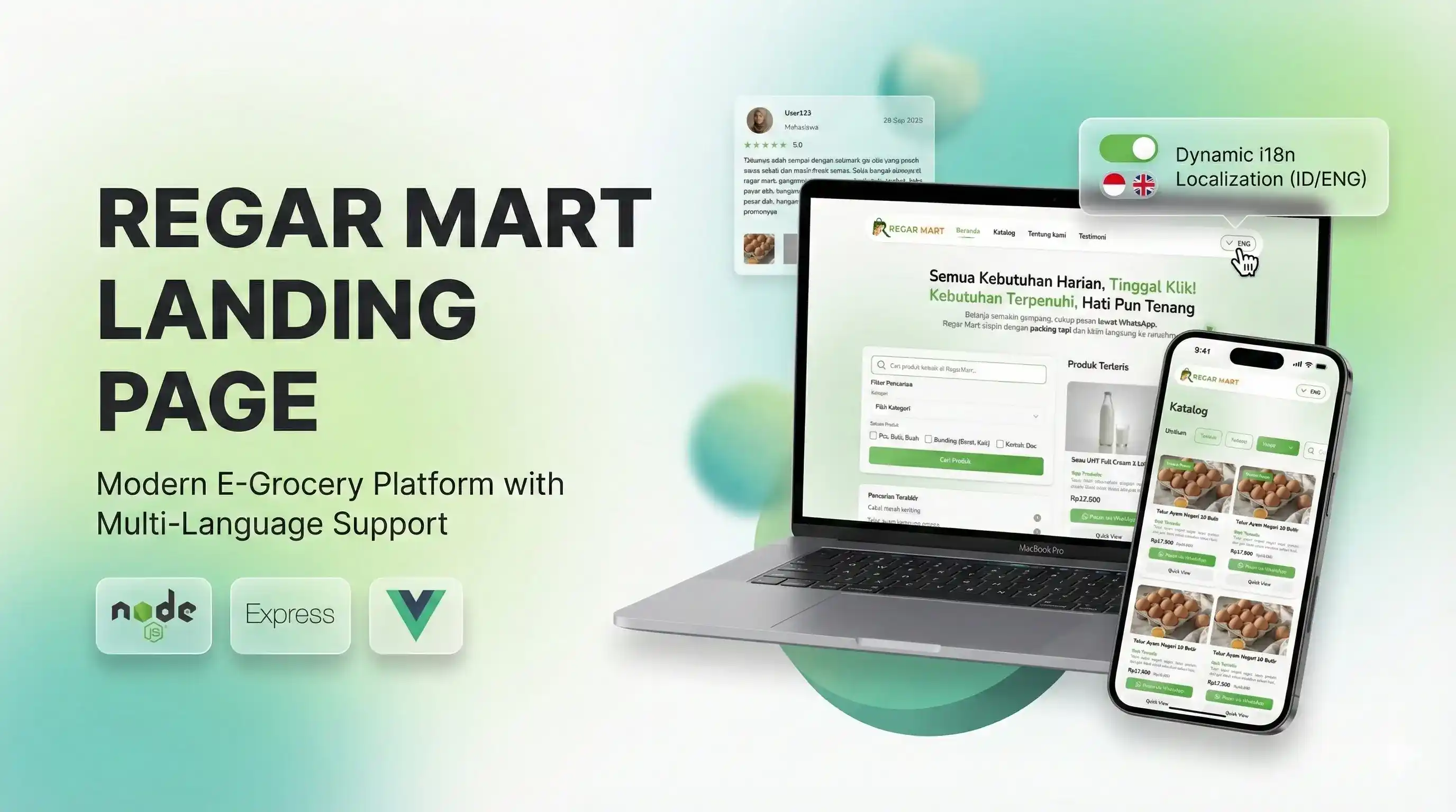 Delivering a responsive e-grocery platform designed for seamless user navigation. Built as a Single Page Application using Vue 3 and Tailwind CSS, it offers dynamic product exploration and built-in localization. The robust backend utilizes Node.js, Express, and Prisma to ensure reliable data fetching.
